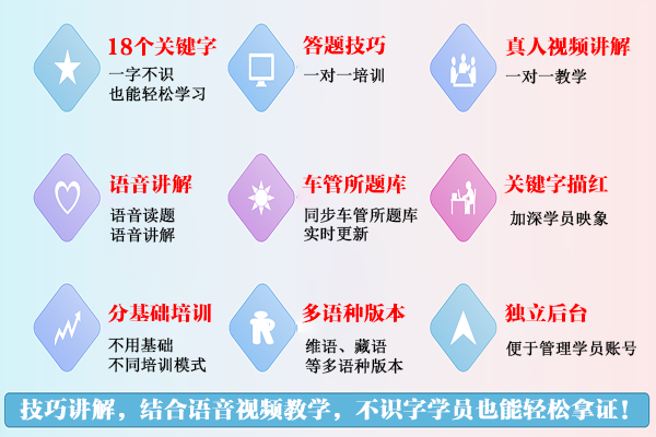 車龍頭交規(guī)是一款專業(yè)的文盲駕考理論速成軟件,采用技巧培訓(xùn)學(xué)員,只要學(xué)員記住18個(gè)核心關(guān)鍵字。不管學(xué)員識(shí)不識(shí)字,記性好不好,都能輕松培訓(xùn)學(xué)員通過科一科四理論考試。技巧簡(jiǎn)單,軟件題庫全,可快速培訓(xùn)學(xué)員。 軟件試用 →